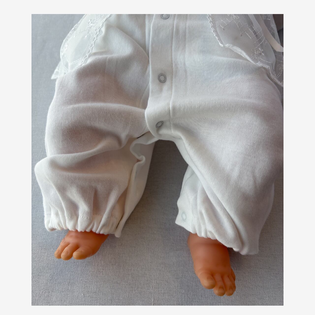 【フラワーボタン&リボンデザイン】日本製セレモニードレス2点セット|出産祝い・退院着・お宮参りに
