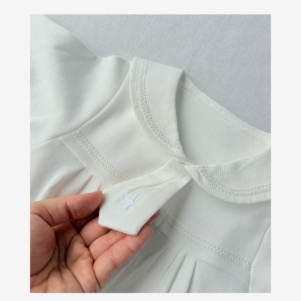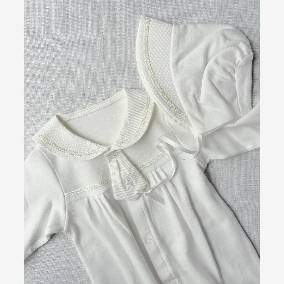 退院時やお宮参り、記念撮影などの特別なシーンはもちろん、日常使いにも対応できるシンプルで上品なデザインです。