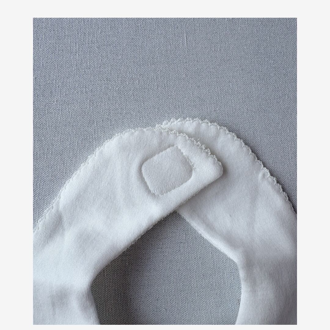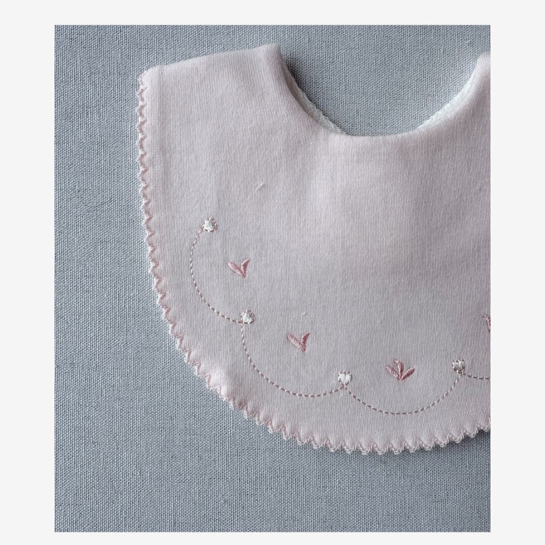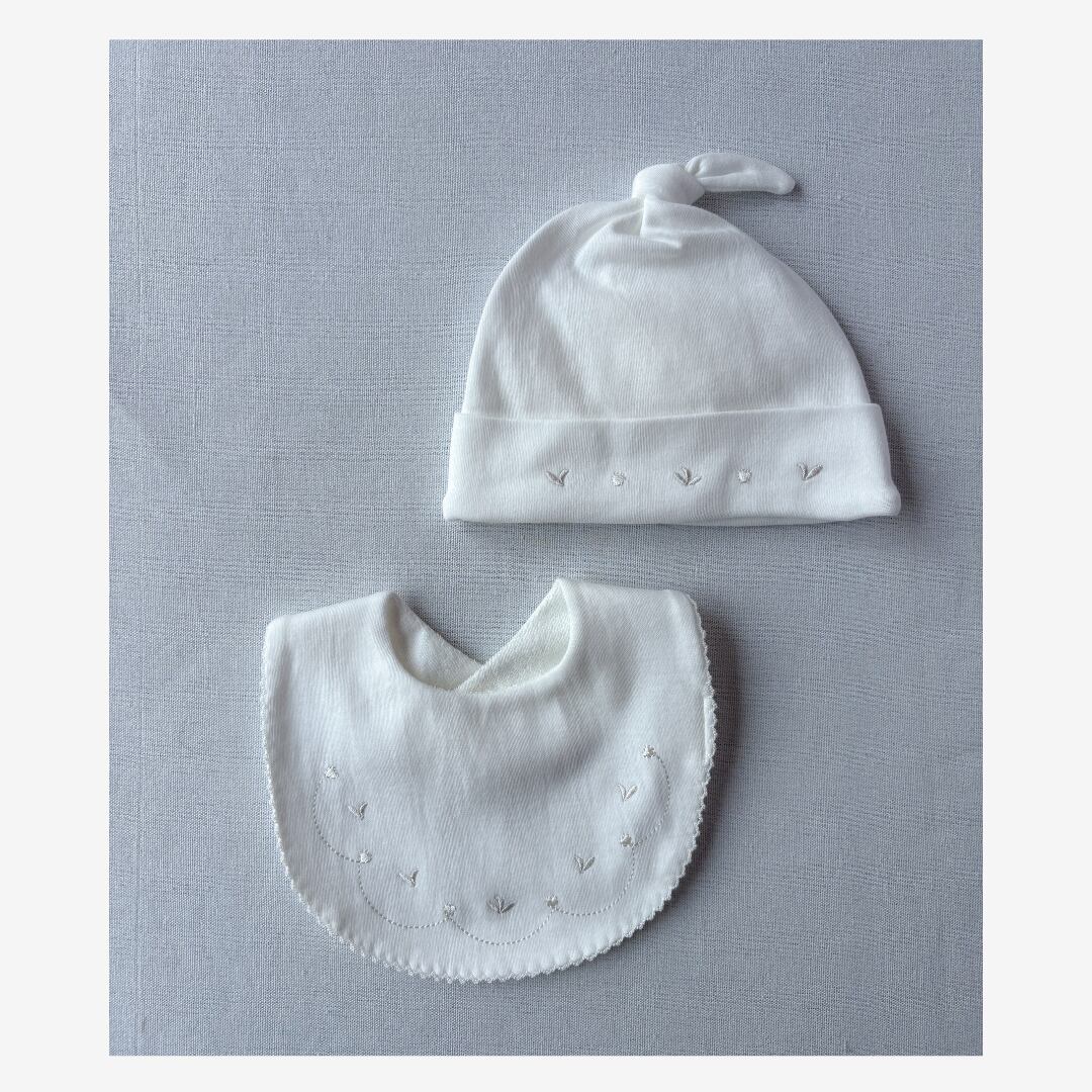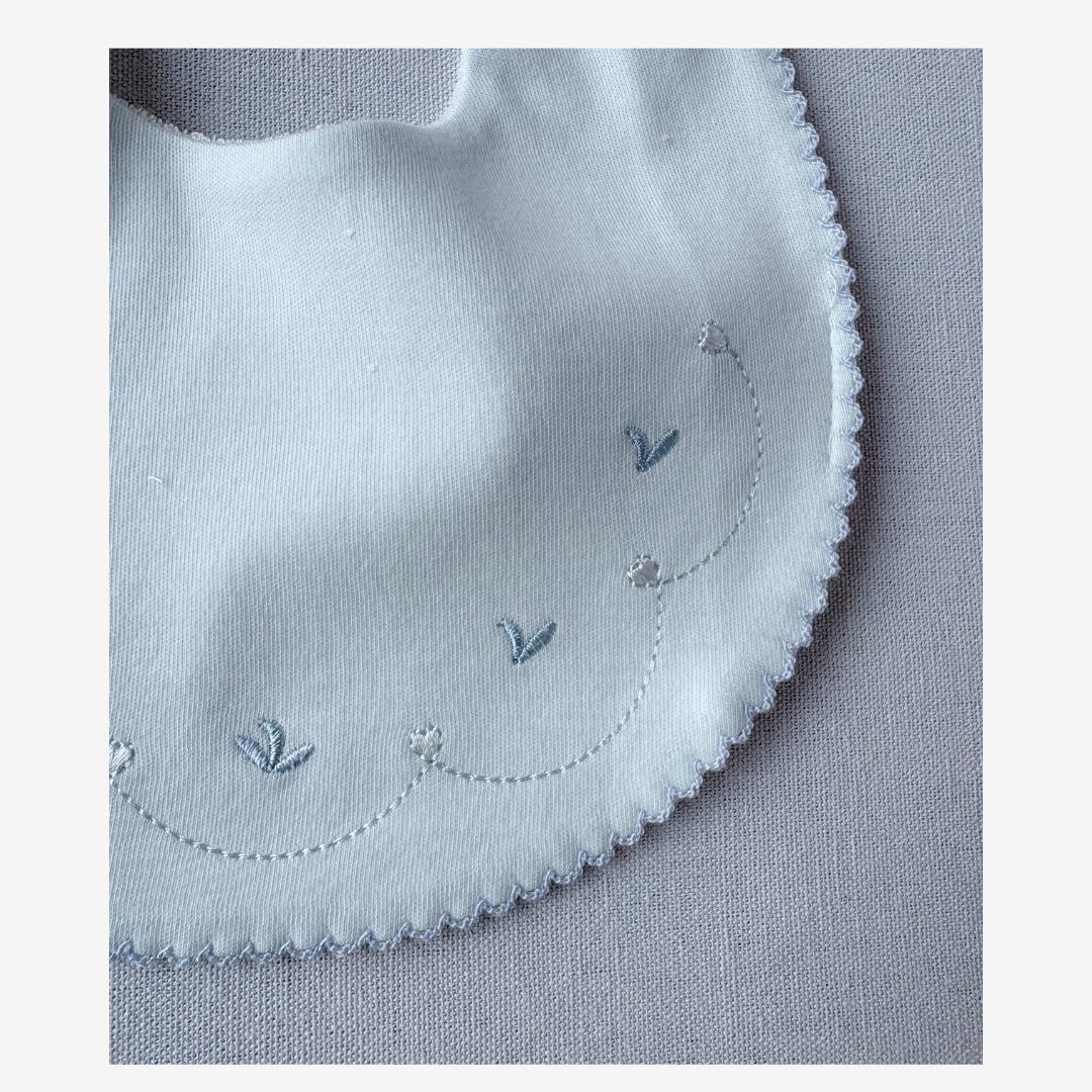 やさしい肌ざわりと刺繍が印象的な、新生児用のスタイです。