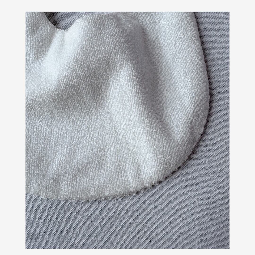 表面はオールシーズン対応の柔らかなスムース生地、裏側は吸水性の良いパイル生地です。