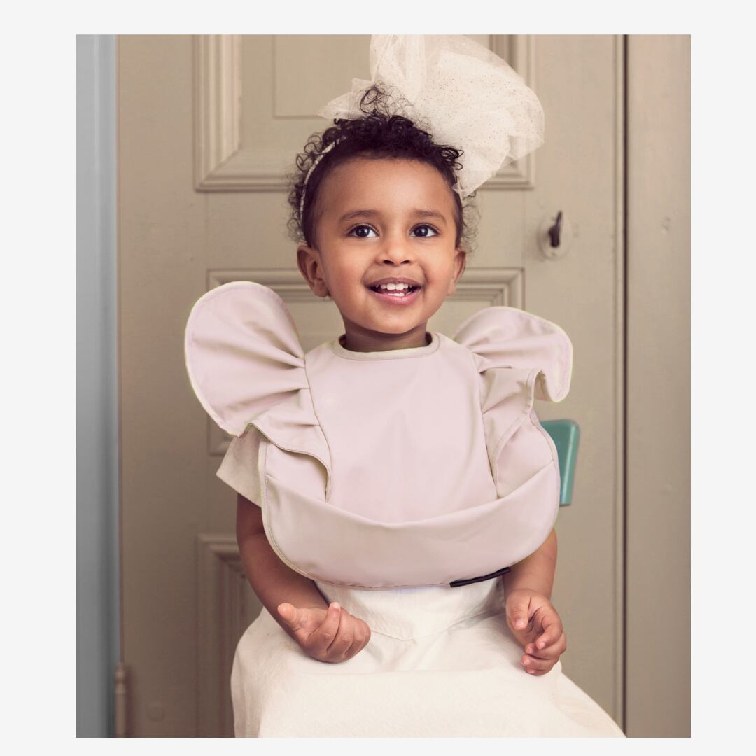 大人気Elodieのお食事エプロン。中でも〈Powder Pink〉は、ブランドを代表するElodieの定番にして一番人気の一枚。