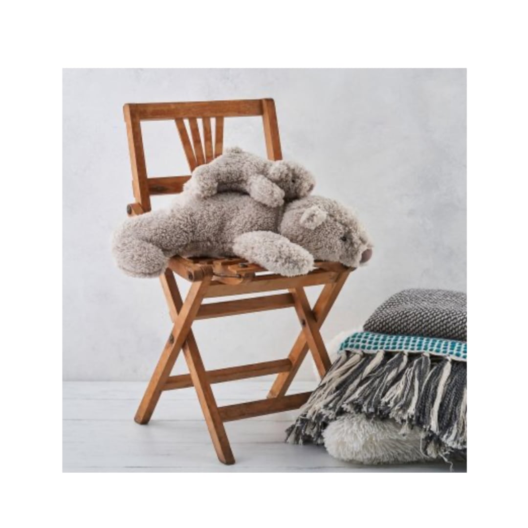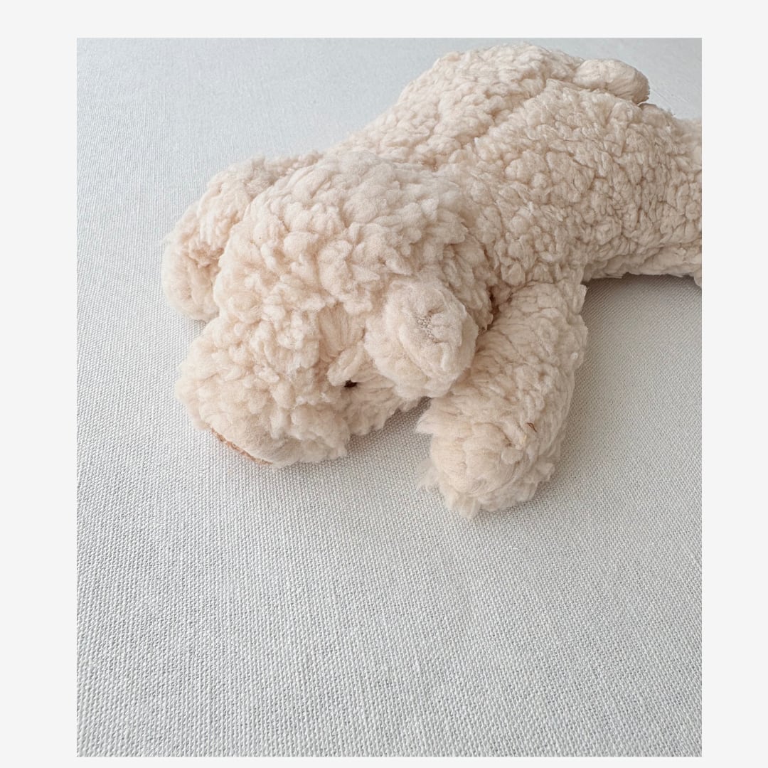 オートミール色のふわふわベア。ベビーサイズは赤ちゃんにもぴったりのミニサイズ。