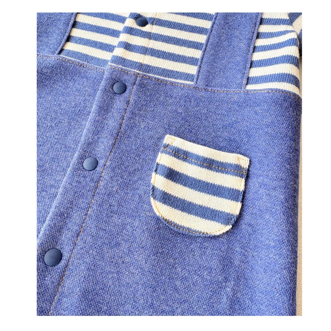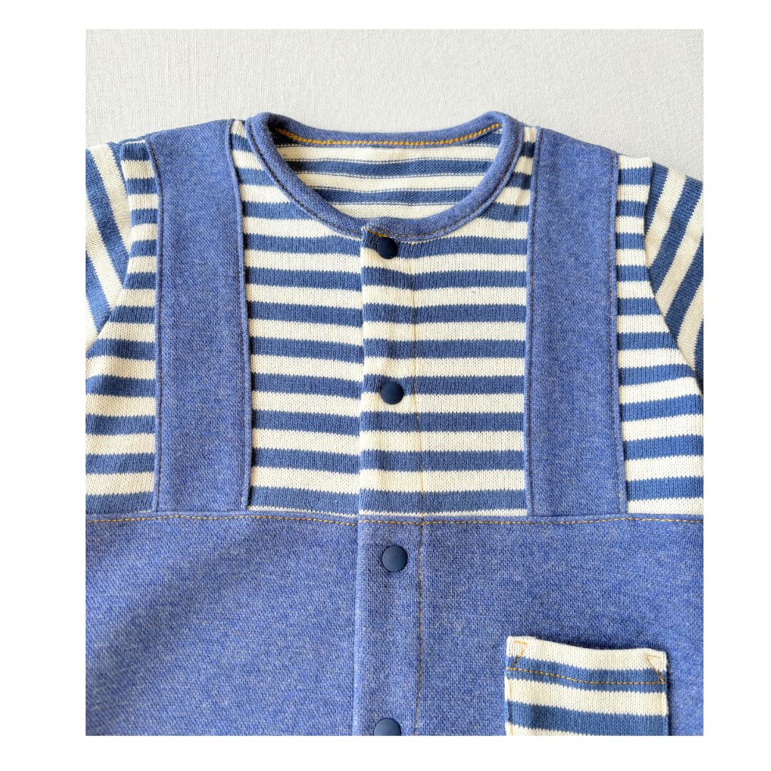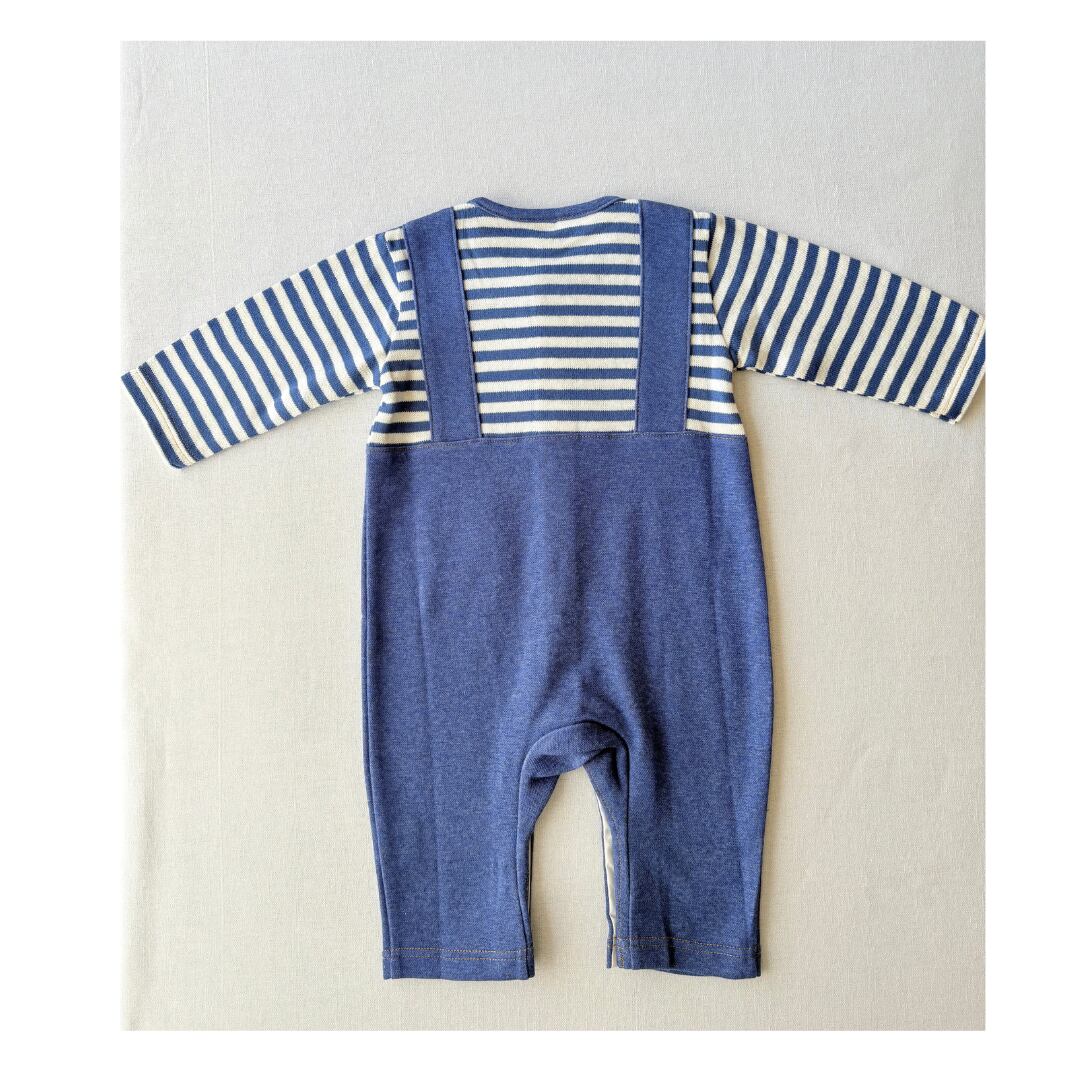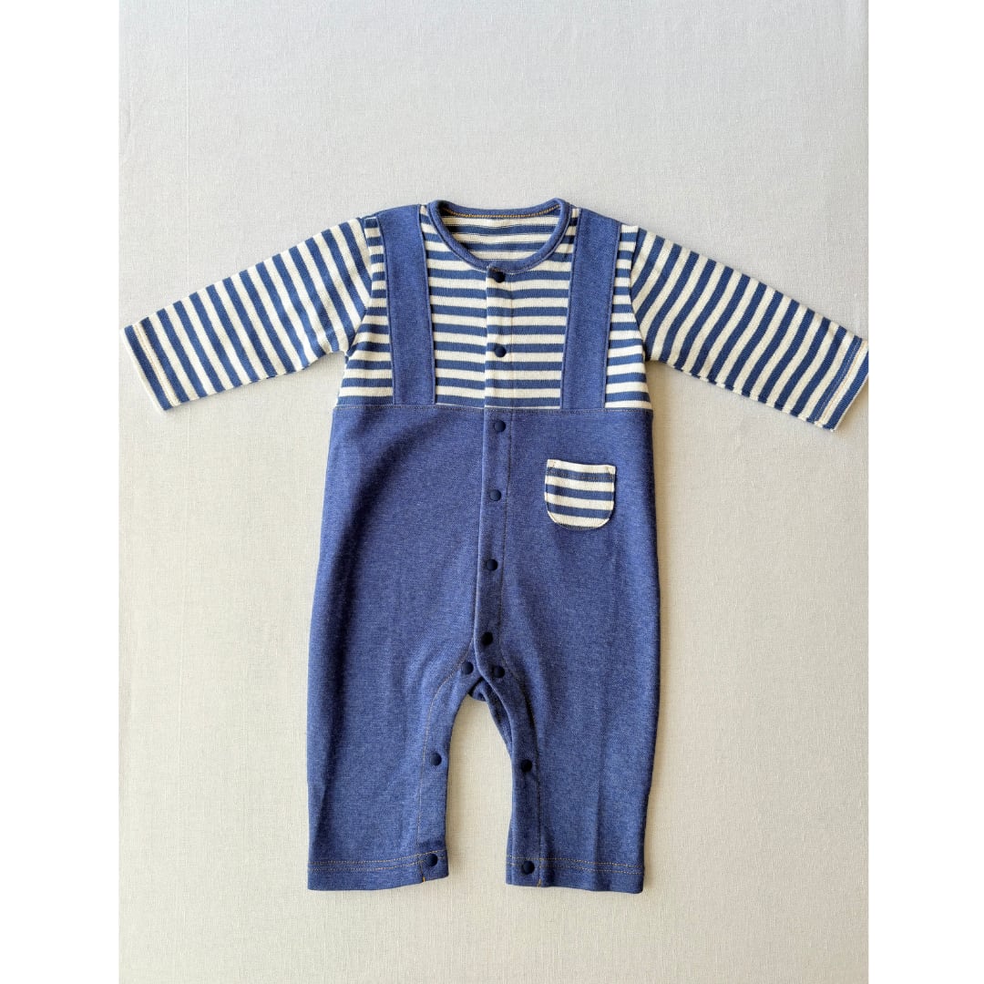 【取り寄せ商品】日本製デニム調ボーダーサロペットカバーオール|秋冬向け・70cm/80cm