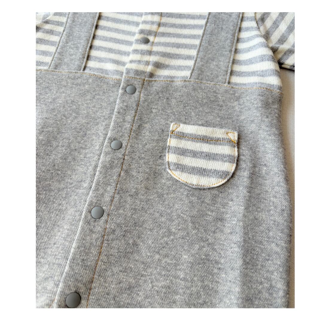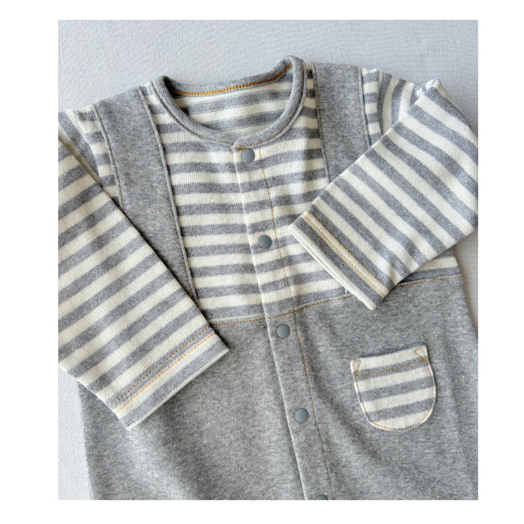 【取り寄せ商品】日本製デニム調ボーダーサロペットカバーオール |秋冬向け・70cm/80cm