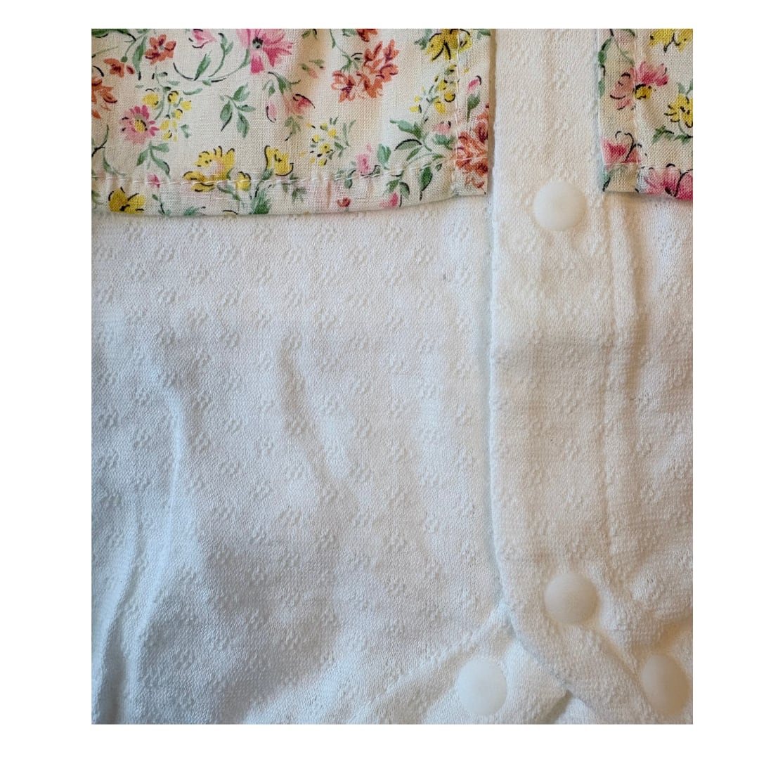 小花柄の切り替え生地がポイントの春夏にぴったりの半袖ロンパース。