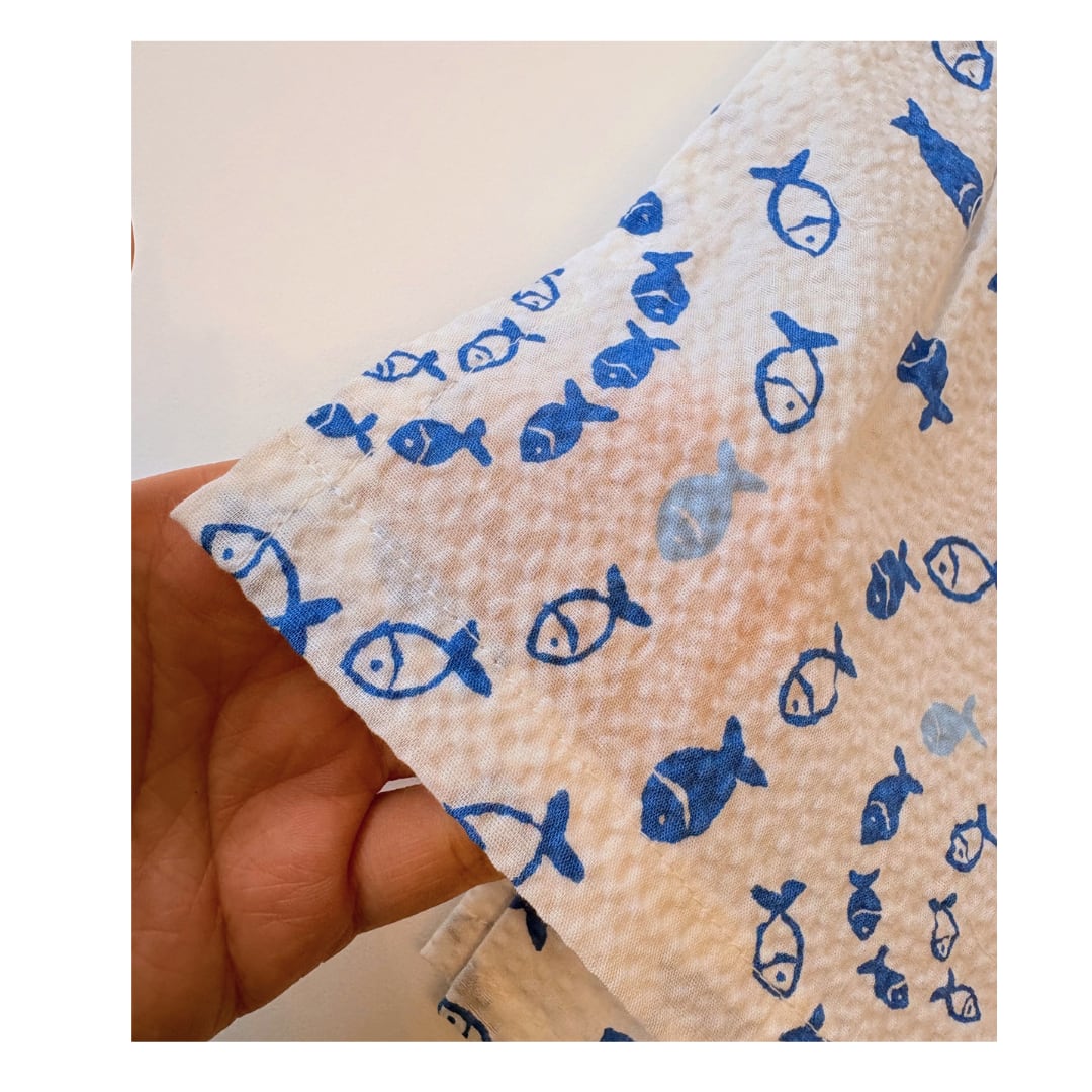 水の中をのびのび泳ぐお魚柄は、お子様の健やかな成長を願うやさしいデザイン。
